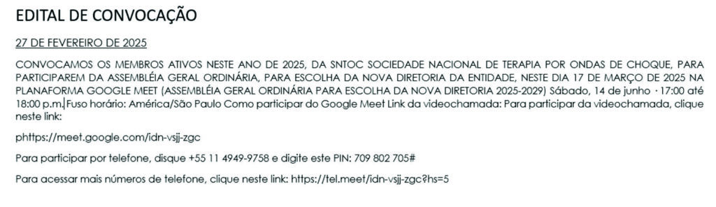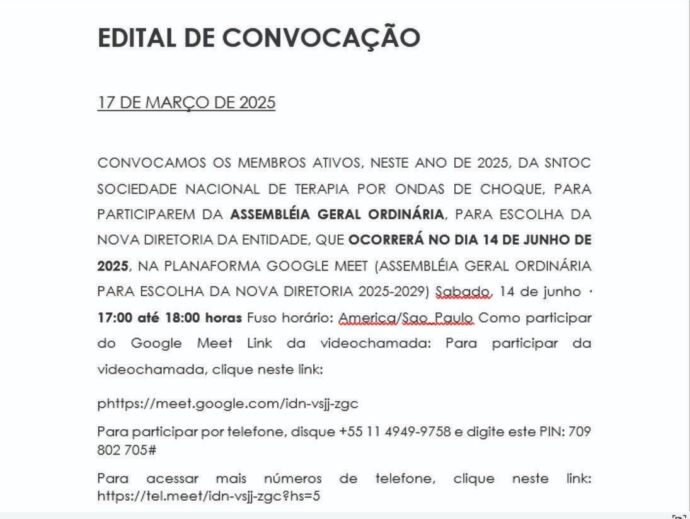 Convocação para eleição da nova diretoria da SNTOC 2025-2029